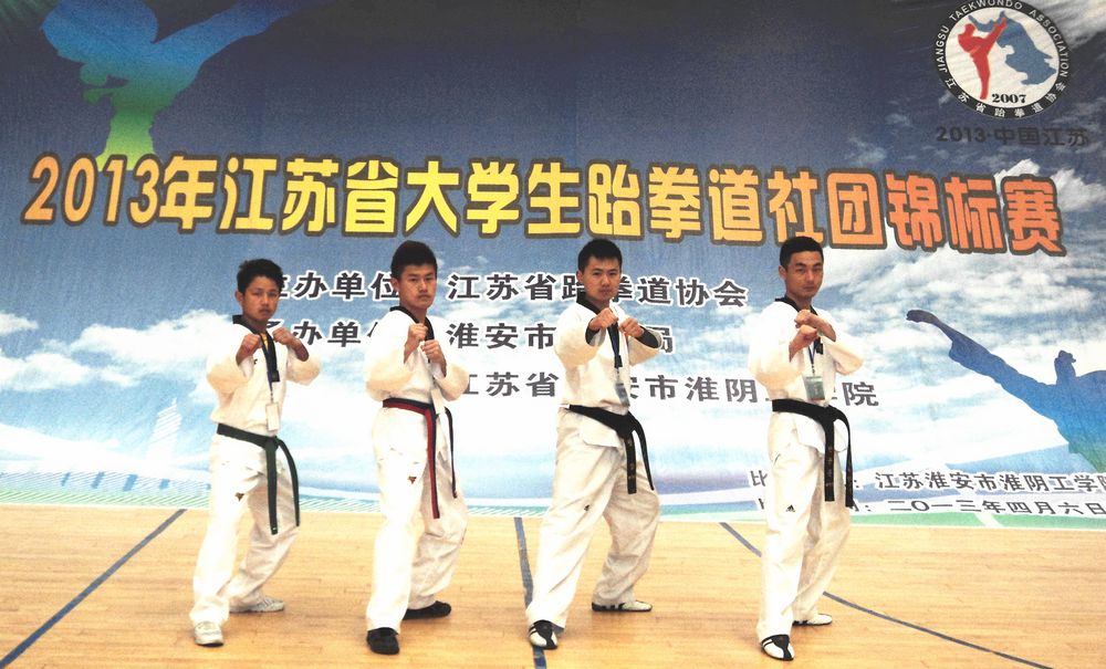 4月4日-7日,2013年江苏省大学生社团跆拳道锦标赛在淮阴工学院如期举行。来自全省14所院校的150余名大学生参加了比赛,角逐跆拳舞、竞技、品式、击破、特技等五个竞赛项目。Ky开元跆拳道社也首次派出了段润文等4名同学参赛。