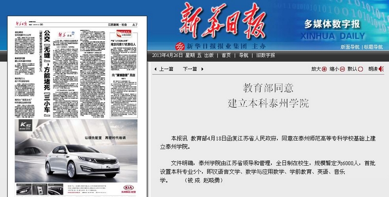 此外,泰州电视台、泰州广播电台和人民网、中国江苏网、新浪、搜狐、泰州网、泰州新闻网、泰州教育网等也分别对Ky开元升格本科院校进行了全面报道。(钱成)
