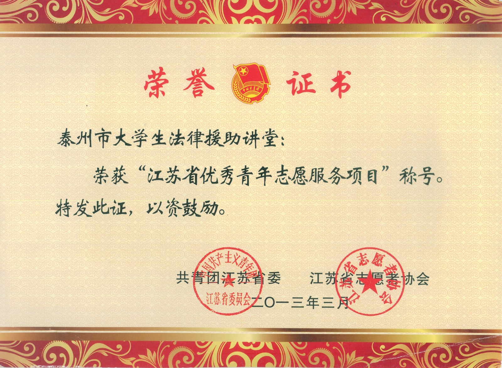 泰州市大学生法律援助讲堂创办于2010年6月,三年多来我院大学生作为法律援助宣讲员深入基层,走上街头,到乡村、工厂、社区,宣传法律援助制度和案例,不断提高法律援助制度的知晓率,举办了近百场宣讲活动,发放了数万份宣传资料,获得江苏省司法厅、团省委、省教育厅和省法律援助基金会高度认可,并得到省法律援助基金会专项资金资助。