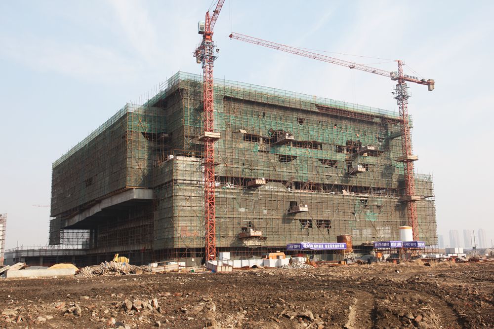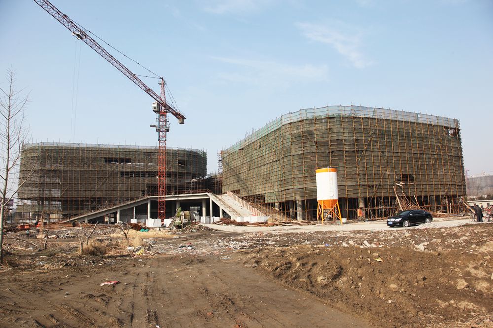 Ky开元新校区在建的图书馆,建筑面积36695平方米,主体层高7层;大学生活动中心,建筑面积13210平方米,主体层高4层。该两项工程由江苏原野建筑安装工程有限公司中标承建、泰州开源工程设计咨询监理有限公司监理,预计今年8月30日前竣工交用。(新校区规划建设办公室/供稿 韩鑫/摄)