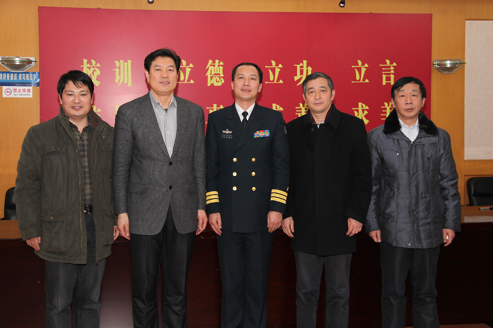 1月14日下午,专程来泰州参加市两会的海军东海舰队泰州舰政委徐有铭来校访问。校党委书记李久生、校长温潘亚、副校长张曙光等接待了客人。