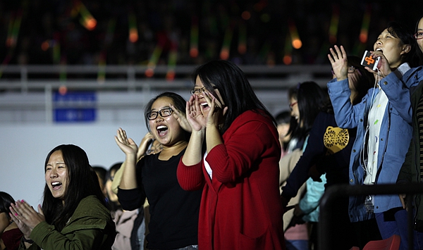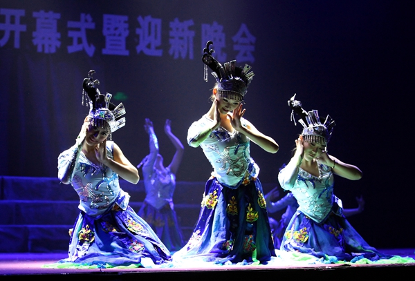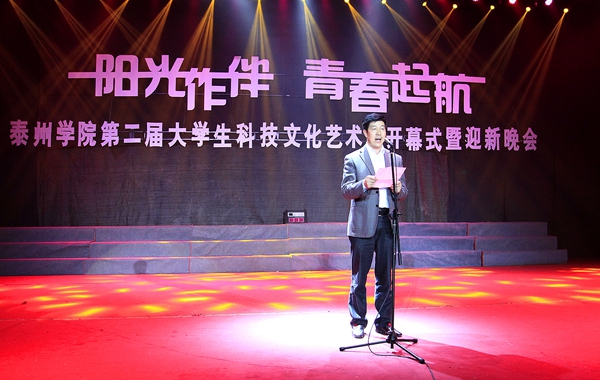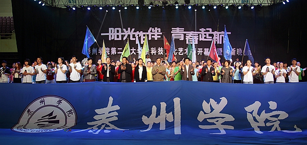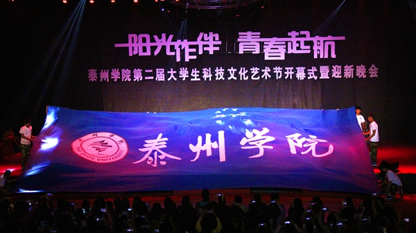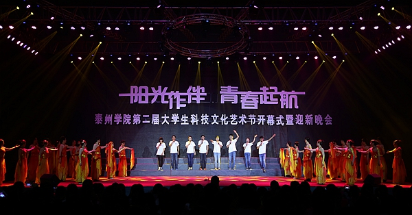 伴随着宛转悠扬的旋律,由人文学院、广播站表演的配乐诗歌朗诵《梦开始的地方》情真意切,表达了泰院学子对学校满腔的热爱;音乐学院同学表演的舞蹈《水姑娘》舞姿曼妙;“梅韵流芳”京剧社在省级比赛中折桂的京剧作品《梨花颂》韵味十足;音乐学院师生联袂表演的船工号子《水乡船韵》,迅速点燃了现场的热情;教育科学学院“丑小鸭”话剧社表演的原创小品《爱之韵》,默默传递着师生之间感人至深的真挚情怀;“星回声”街舞社的街舞《Return of the king》high翻了全场;而各学院新生方阵的现场拉歌互动环节,更是将晚会一次次推向了高潮。最后,整场晚会在青春活泼的主题歌舞《梦想从这里起航》中圆满结束,同学们随着动感的音乐尽情地挥洒快乐、释放激情,整个体育场成了欢乐的海洋……