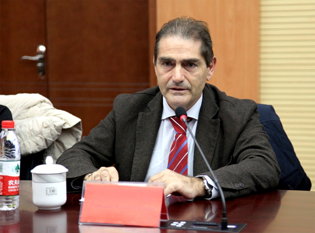 弗朗西斯科•罗科•德埃米利奥转达了福贾市市长对Ky开元集团的祝福,简单介绍了意大利福贾市的地理位置、历史和特色产业以及福贾大学的办学特色等。福贾市位于亚平宁半岛南端,是意大利南部普利亚大区的一个城市,当地经济以农业为主,有“意大利粮仓”之称。