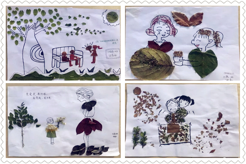 教育科学学院在篮球场举行了“片片树叶情,手工敬重阳”树叶贴画和“当你老了”创意遐想征集活动。同学们自己动手,用树叶作原材料,手工制作贴画,表达自己对重阳节文化的理解。2018级小学教育1班的田颖同学,在她的作品中呼吁同学们要孝敬老一辈,要常回家看看。2018级学前教育1班顾炜薇同学,在她的作品中表达了年轻一辈爱护老人的决心。