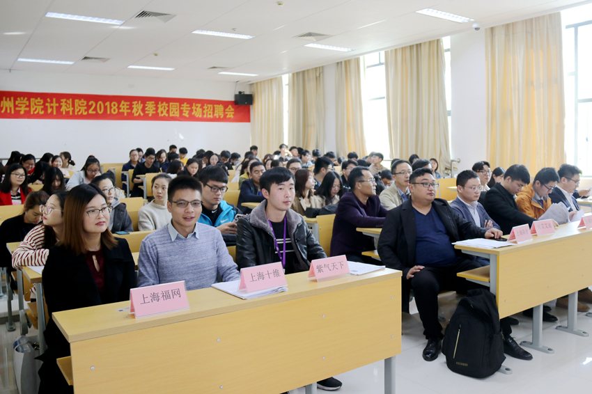 为拓宽就业渠道,深化校企合作,构建毕业生与用人单位的交流平台。近日,计算机科学与技术学院在教学楼A3107、A3108教室举办2018年秋季校园专场招聘会。苏州凌志软件、江苏创正信息、江苏紫气天下、上海阳全网络、上海福网信息、无锡度创信息等10多家IT企业应邀出席,校学工处副处长蒋成忠、计科院院长张中国、计科院党总支副书记陈茂国及2019届毕业生参加了此次招聘活动。