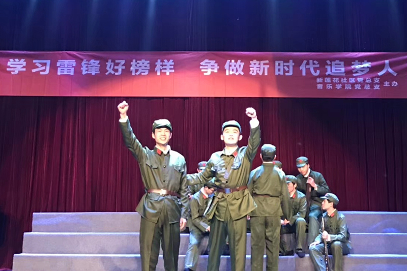 同日,音乐学院的阳光志愿者也利用专业特长,以文艺表演的方式在学术活动中心小剧场与新莲花社区党员共学雷锋精神。