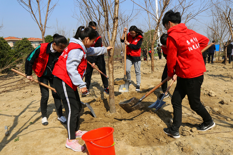 春回大地,万物复苏。3月12日是全国第41个义务植树节,船机学院党总支、团总支、关工委联合海陵区团委、海陵区青商会及海陵区专业对口企业开展了“共植青春林, 以劳动美托起绿色中国梦”为主题的义务植树活动。
