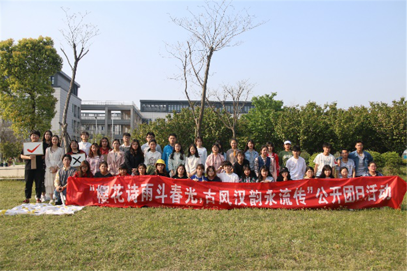 4月17日下午,经济与管理学院在图书馆东侧草坪举办“樱花诗雨斗春光,古风汉韵永流传”公开团日活动。