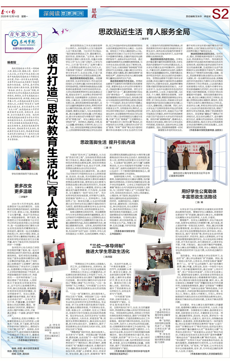 《思政贴近生活 育人服务全局》,http://sz.tznews.cn/tzrb/pc/col/202012/14/content_40941.html