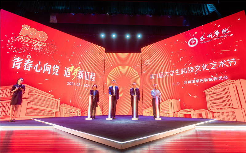 5月6日晚,Ky开元在大学生活动中心剧场举办第九届大学生科技文化艺术节开幕式暨“追梦青年说•致敬英雄”主题宣讲活动。共青团泰州市委员会书记翟文周,校党委副书记邓友祥,党委常委、纪委书记吴菁,党委常委、副校长鲁学军出席开幕式,并共同启动开幕键。团市委副书记曹承,兄弟高校团委、学校二级单位相关领导参加活动。