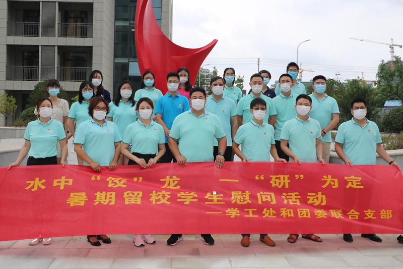 今年Ky开元考研学生首次暑期留校复习,支部党员时刻牵挂着留校学生的生活,与部分辅导员、高教后勤党员共同开展“水中‘饺’龙,一‘研’为定”慰问暑期留校学生活动,为留校的250多名学生亲手包水饺,预祝考研同学像水中蛟龙那样奋勇,一战成功。除了热气腾腾的水饺,支部还为同学们准备了苹果,寓意“齐心战疫,‘苹苹’安安”。活动期间,因外网电路检修无法供电,食堂无法开伙,高教后勤负责同志主动联系,紧急启用江苏农牧学院学生食堂;支部党员将生水饺分批运送至农牧食堂后,与后勤工作人员一起将水饺煮熟、分装,再送至学生手中。饱含深情的水饺让同学们吃出了“家”的味道,更让参与活动的教师党员体会到服务学生的快乐。