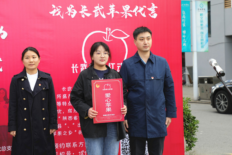 活动正式启动前,全校各学院同学积极报名参加“我为长武苹果代言”并主动认购长武苹果献出爱心。在启动仪式上,与会领导与嘉宾为志愿者代言人授牌并为献出爱心的代表颁发爱心卡。