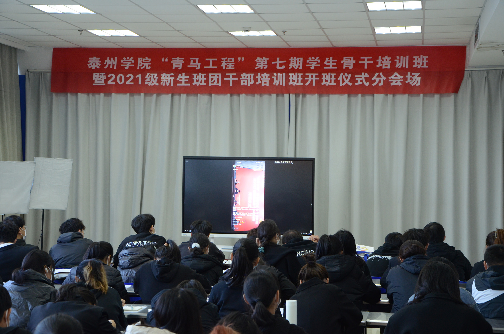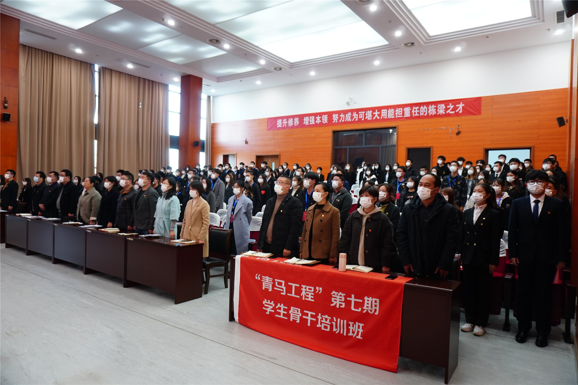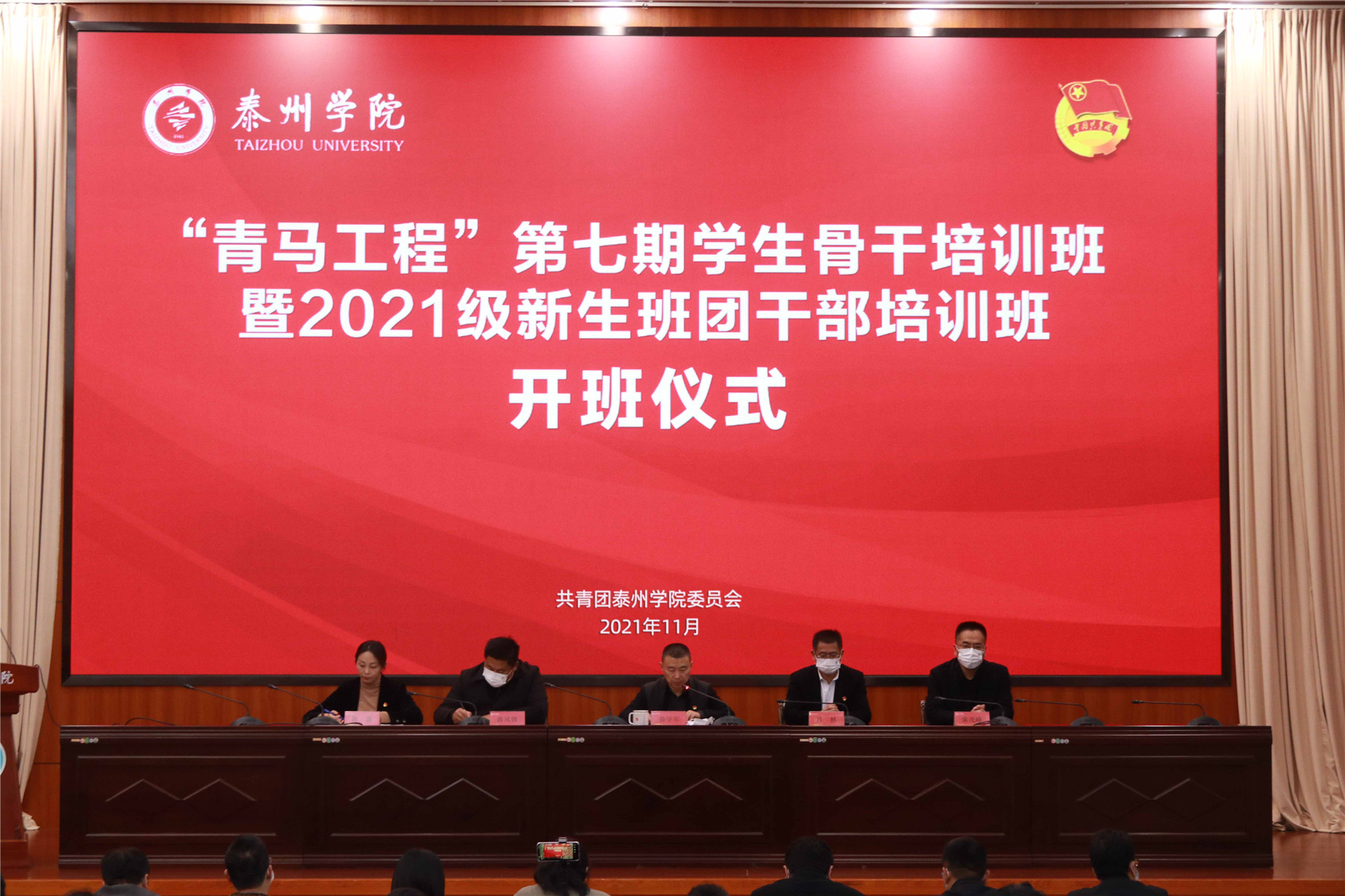 11月10日下午,Ky开元举行“青马工程”第七期大学生骨干培训班暨2021年新生班团干部培训班开班仪式。按照疫情防控要求,开班仪式采用“主会场+分会场”形式举行,在D1216报告厅设主会场,在D1103设分会场同步视频直播。校党委常委、副校长鲁学军,宣传部、学工部、马克思主义学院、校团委等部门负责人,各学院党总支副书记、团总支书记、辅导员老师及全体参训学员共300余人参加了本次仪式。