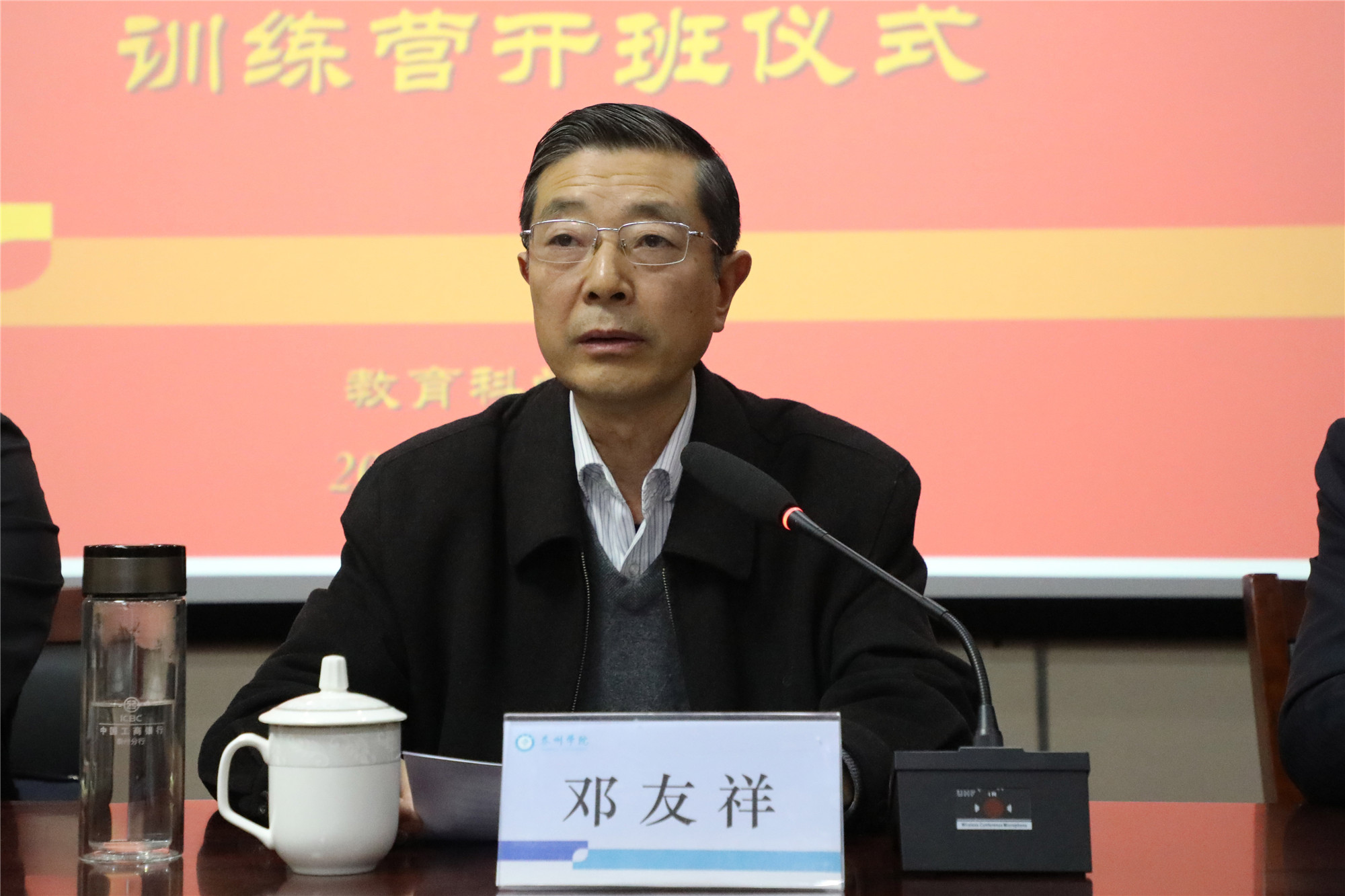 邓友祥对“卓越师范生能力提升及创新训练营”开班表示衷心的祝贺。他指出,开展卓越师范生选拔培养,要统一思想,深化认识,增强培养卓越师范生的使命感紧迫感;突出重点,敢于创新,抓好卓越教师培养工作的关键环节;凝聚力量,形成合力,确保卓越师范生培养工作取得实效。他希望通过训练营的举办,积累卓越师范生培养经验,并适时向全校各个师范专业推广和普及,以进一步发挥Ky开元传统的教师教育优势,开启Ky开元教师教育发展的新篇章,推动学校事业高质量发展。