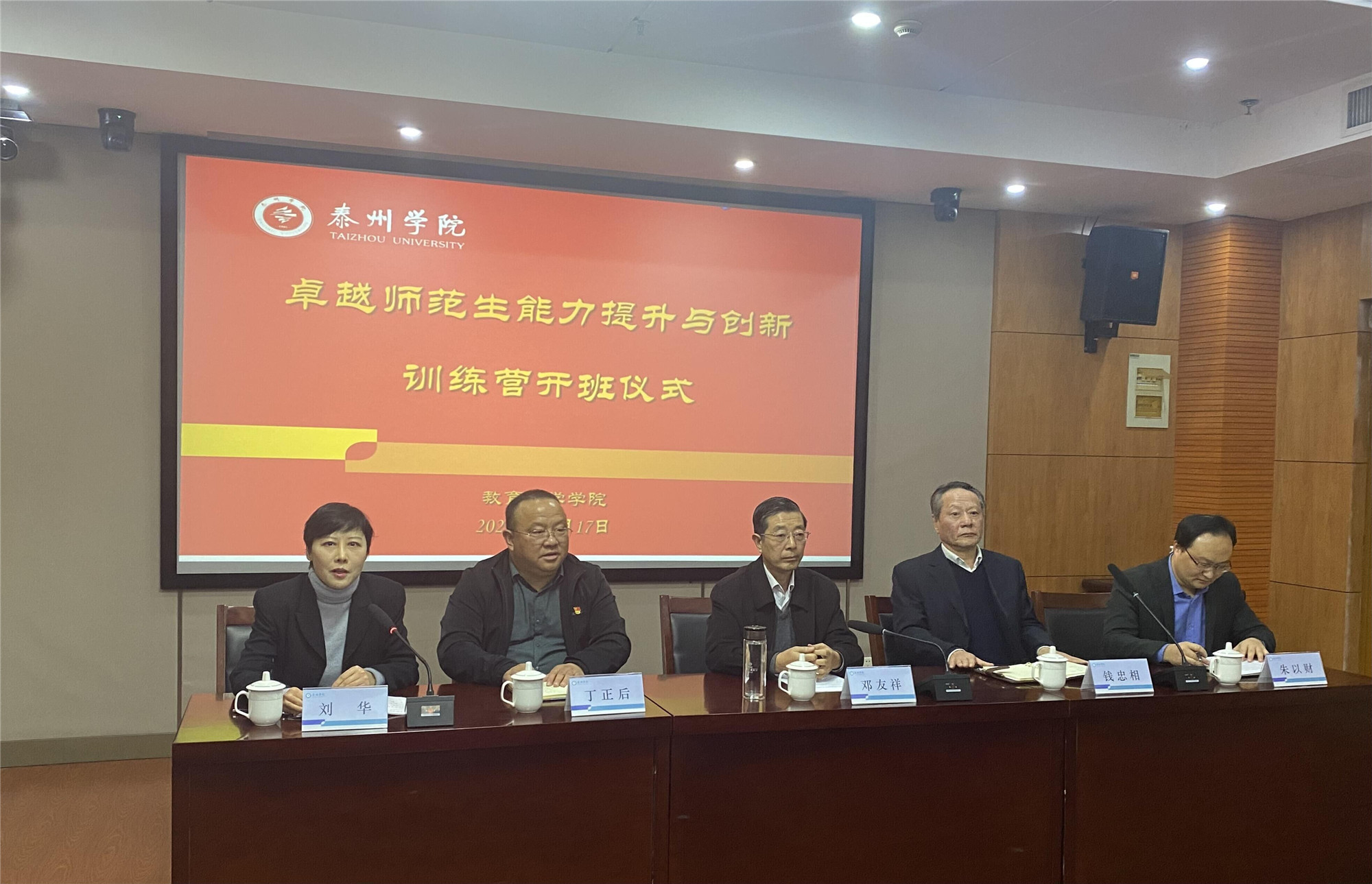 11月17日下午,教育科学学院在行政楼D1214会议室举行“卓越师范生能力提升及创新训练营”开班仪式。校党委副书记邓友祥,江苏省特级教师、泰州市实验小学校长丁正后,教育科学学院党政负责人,教师代表,2020级“卓越师范生能力提升及创新训练营”学员参加开班仪式。活动由教育科学学院副院长刘华主持。