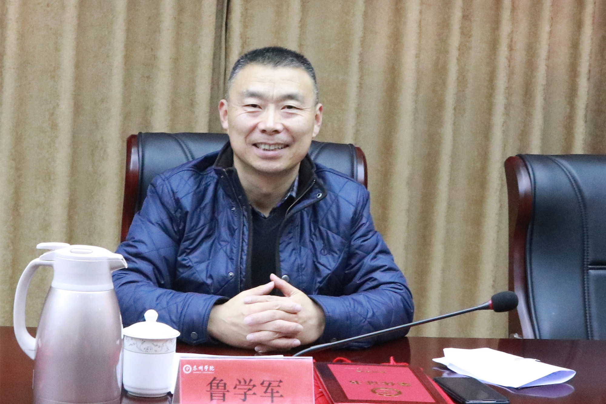 鲁学军宣读了2021年荣休教职工名单。出席会议的校领导共同为荣休教职工颁发荣休证书并佩戴红围巾。