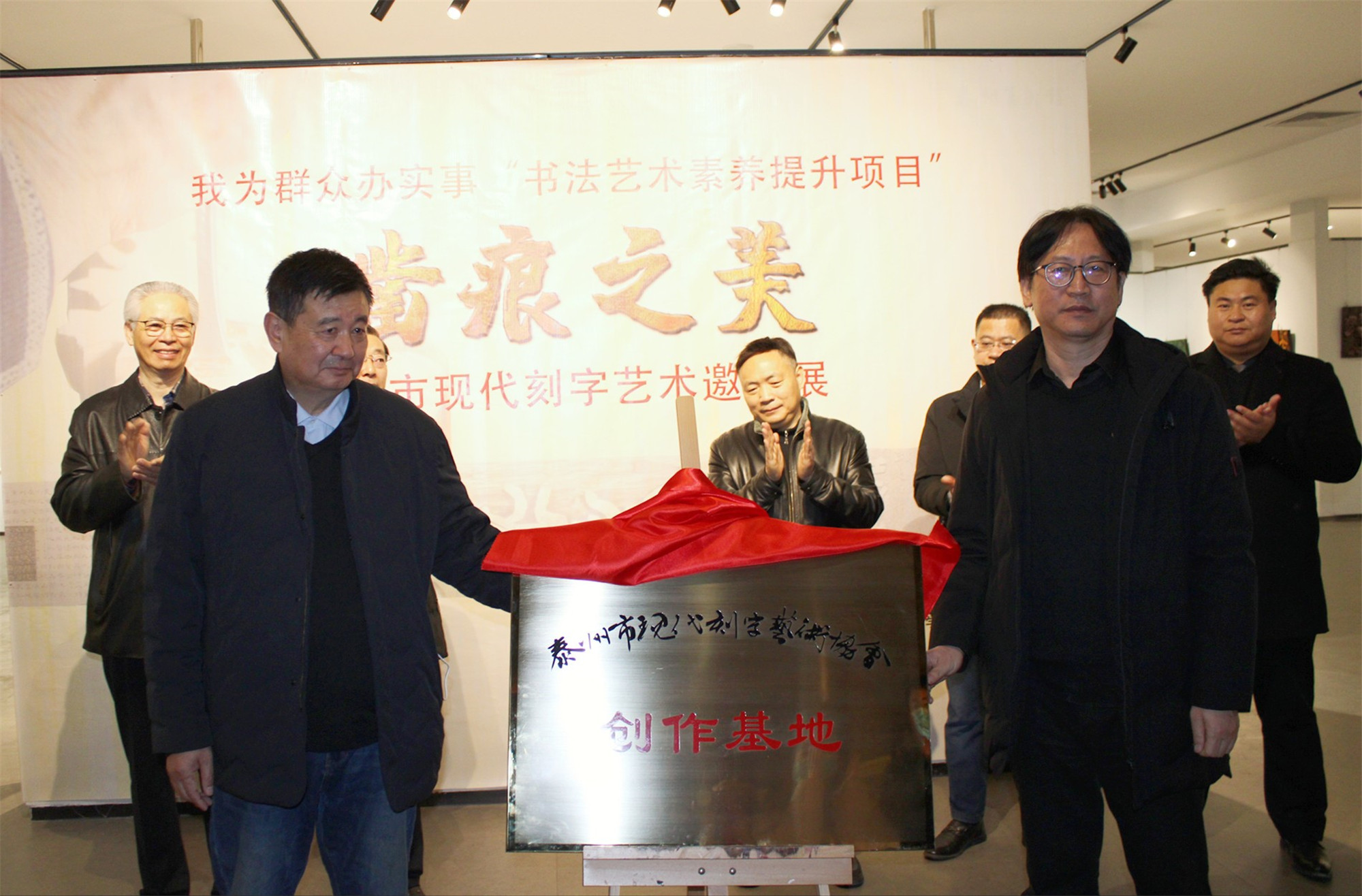 滕江华、美术学院院长黄平为泰州市现代刻字艺术协会“艺术创作基地”授牌。