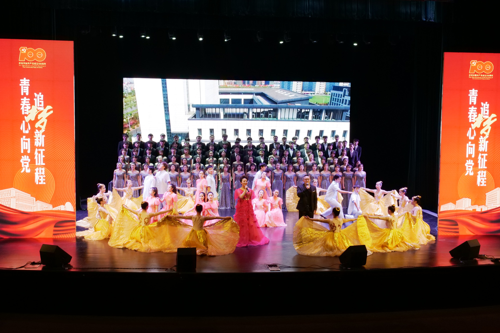 晚会在音乐学院的大合唱《没有共产党就没有新中国》中拉开序幕。经济与管理学院的舞蹈《东方破晓》、人文学院的朗诵《觉醒青春》、教育科学学院的舞蹈《沁园春·雪》、大学生艺术团流行乐团的歌曲串烧《错位时空》以及音乐学院的舞蹈《碇步桥水清悠悠》等艺术节获奖节目登台亮相。晚会在校艺术团师生的歌舞《Ky开元集团之歌》中画上了圆满的句号。