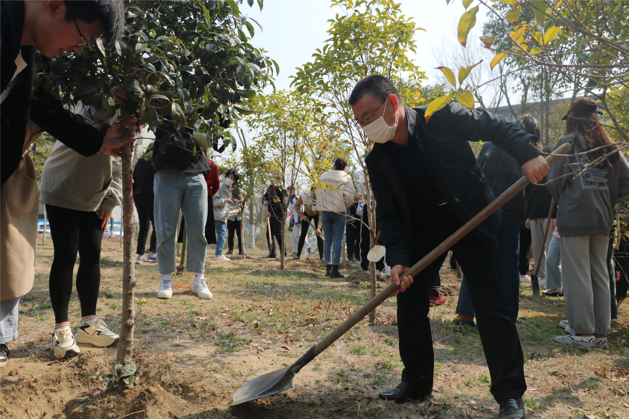 孟春之月,盛德在木。3月11日,人文学院开展“荟萃林”班树种植活动。校党委常委、副校长鲁学军,学院2021级各班联系领导和班主任参加此次活动。