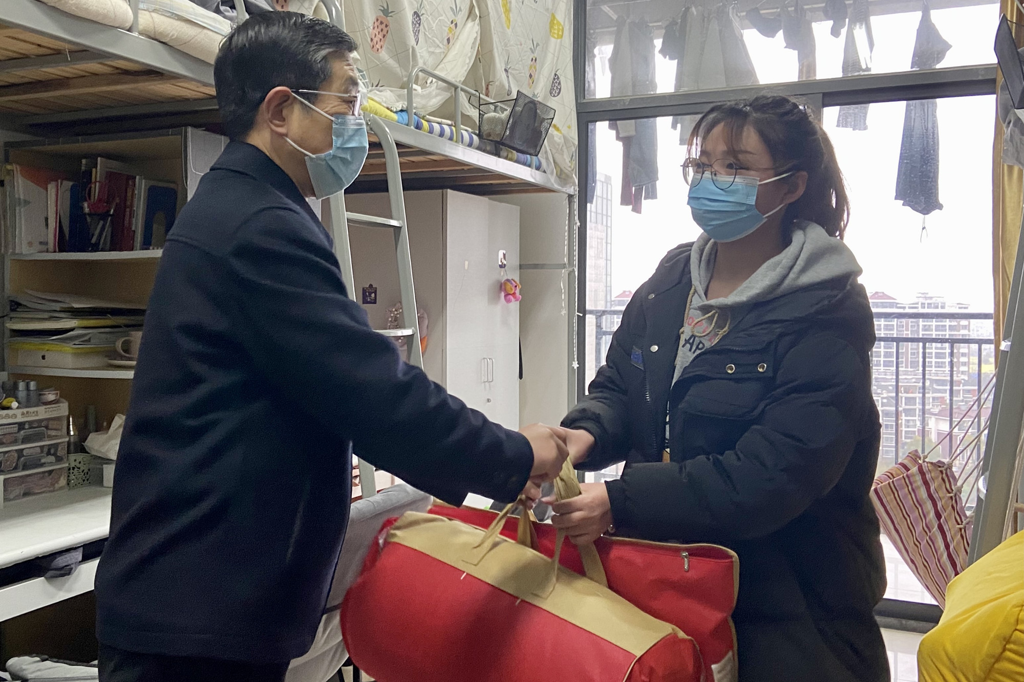 3月21日中午,校党委副书记邓友祥在外国语学院党政班子的陪同下深入学生宿舍,走访慰问了他所联系的外国语学院2018级英语师范2班的学生代表。