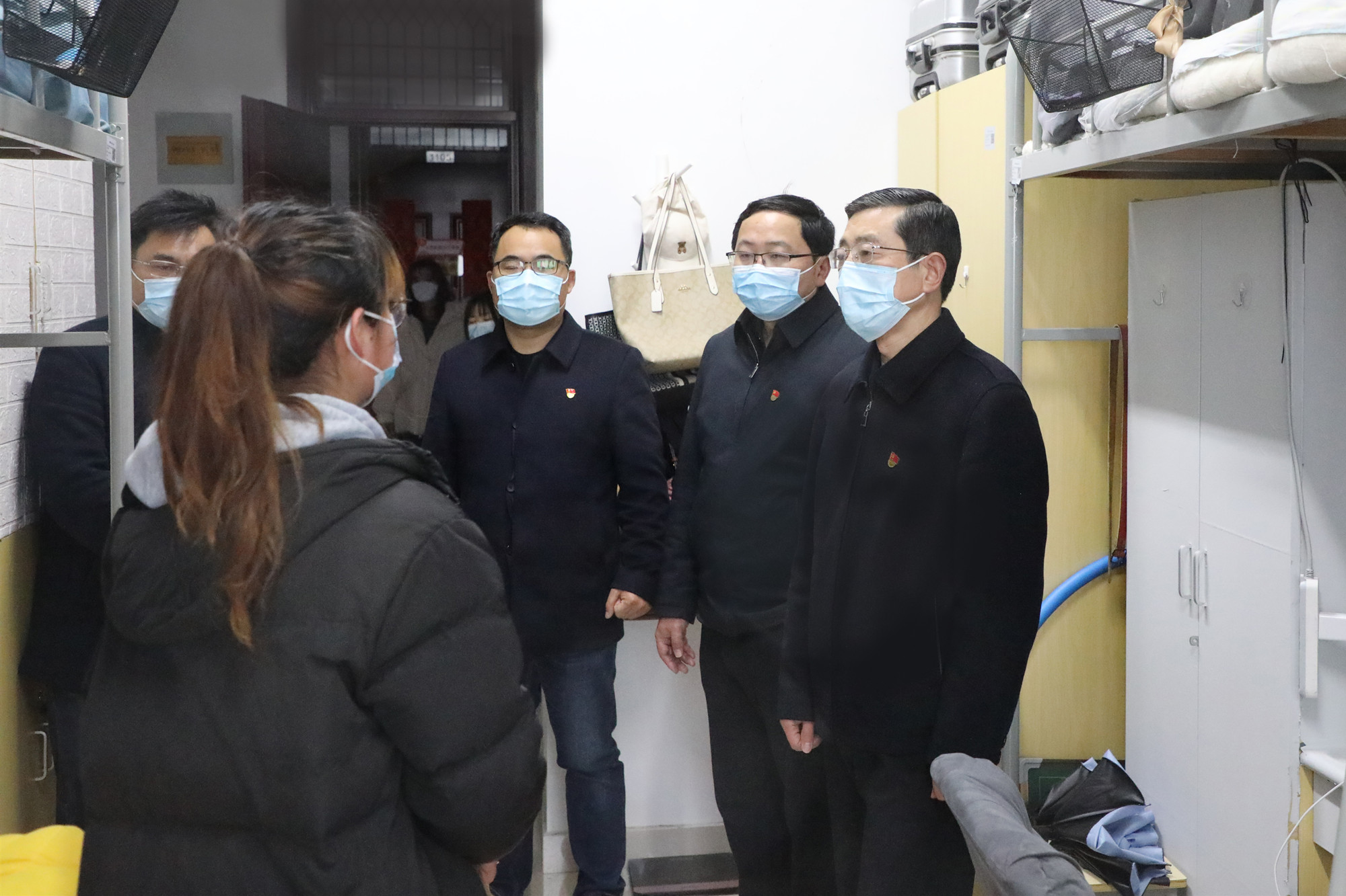 走访过程中,邓友祥询问了同学们的学习、生活、就业等情况,认真听取了同学们对线上教学、晨晚体温检测、双码查验、核酸抽检、错峰就餐等工作的建议和意见,对同学们积极配合学校疫情防控工作表示感谢。他叮嘱同学们要做好自身防护,夯实基础知识,狠抓专业学习,并勉励同学们做好人生发展规划,练就过硬本领,争取在考编、考研、考公等方面有所作为。
