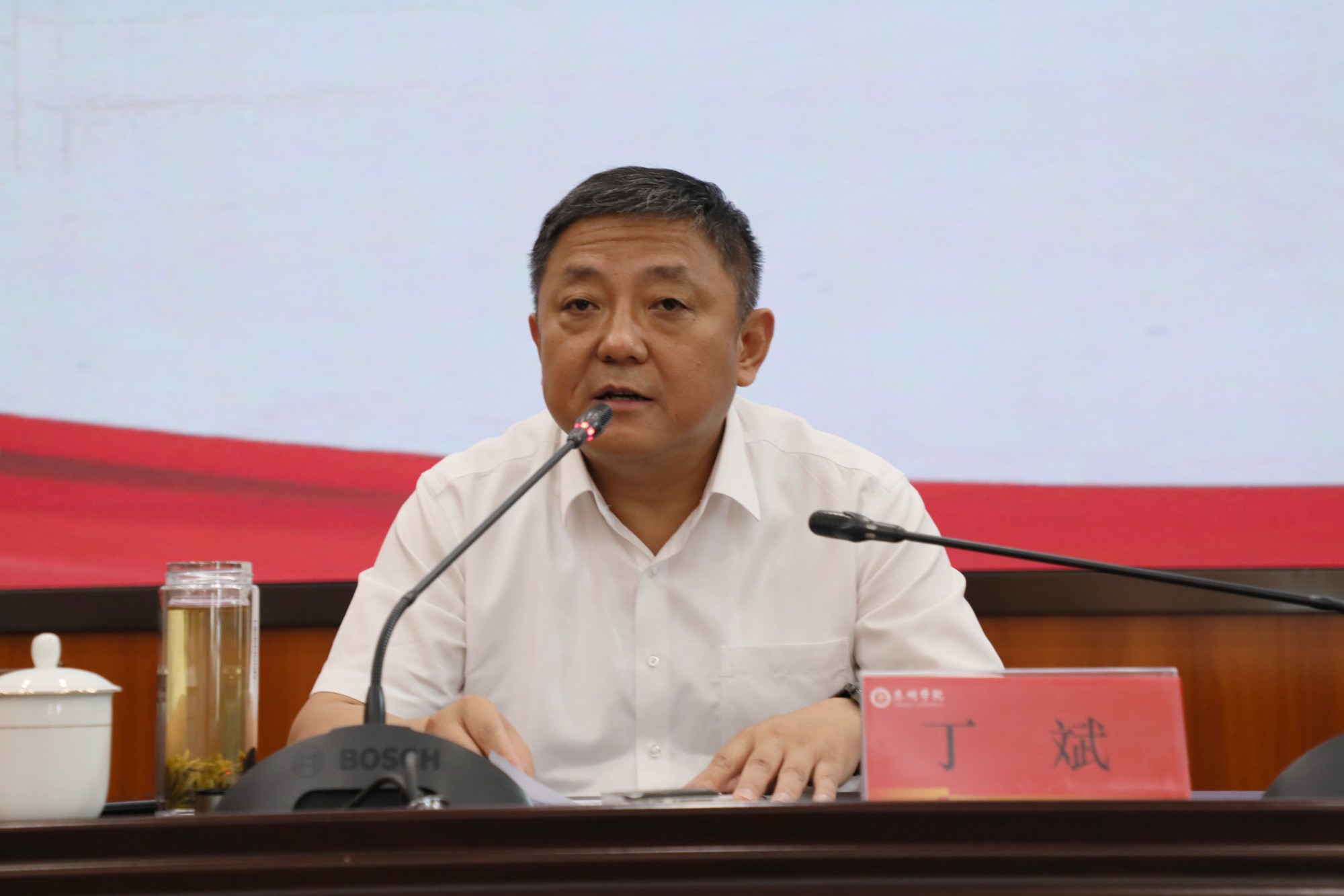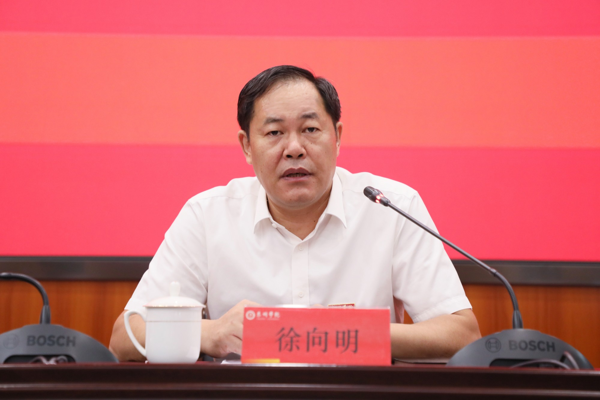 徐向明指出,在促进学校事业高质量发展上,我们必须解决做什么、用什么做、怎么做、谁来做等四个问题,要同心定力,锚定目标办大事,做到统一思想、明确目标、保持定力;要凝心聚力,集聚资源办大事,积极争取省市支持,用好人才第一资源,发挥资源集聚优势;要齐心协力,团结协作办大事,涵养团结协作的品性,夯实团结协作的基础,提高团结协作的本领;要尽心尽力,主动担当办大事,做到压实责任、敢于担当、务实笃行,以奋发昂扬的斗志、排除万难的决心和只争朝夕的精神,成大事、有大为。