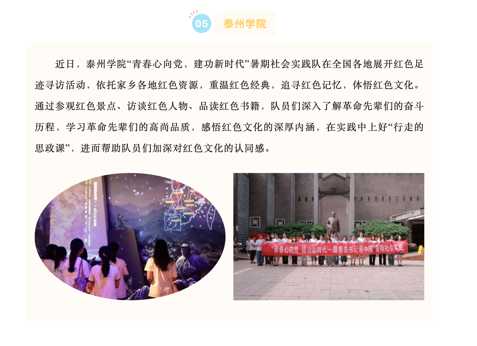 《江苏教育发布》8月20日报道《多彩实践活动展示青年担当⑦ | 一周校园动态(8.14—8.18)》,报道链接为:https://mp.weixin.qq.com/s/p4nCbiAYr7oTaDLLbhZ5Vg