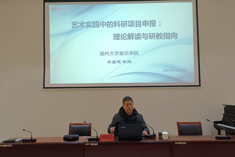 当天下午,扬州大学音乐学院单宏健教授还向学院作《艺术实践中的科研项目申报:理论解读与研教指向》专题学术讲座,促进全体教师提升科研能力;离退休干部教师举办座谈会,为学院发展建言献策。大家还一起参观学院文化展板,深入了解发展理念和特色。