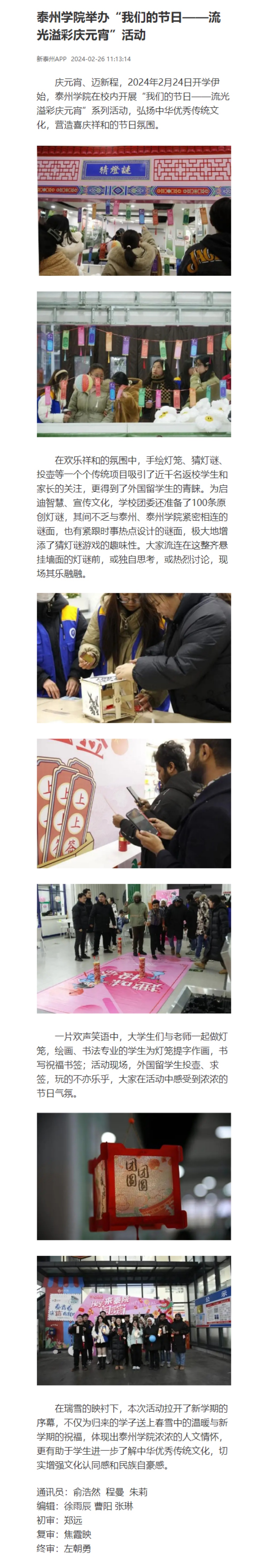 2024年2月26日,《新泰州》报道《Ky开元集团举办“我们的节日——流光溢彩庆元宵”活动》,报道链接:https://h5.newaircloud.com/detailArticle/23555803_76944_taizhourb.html?source=1