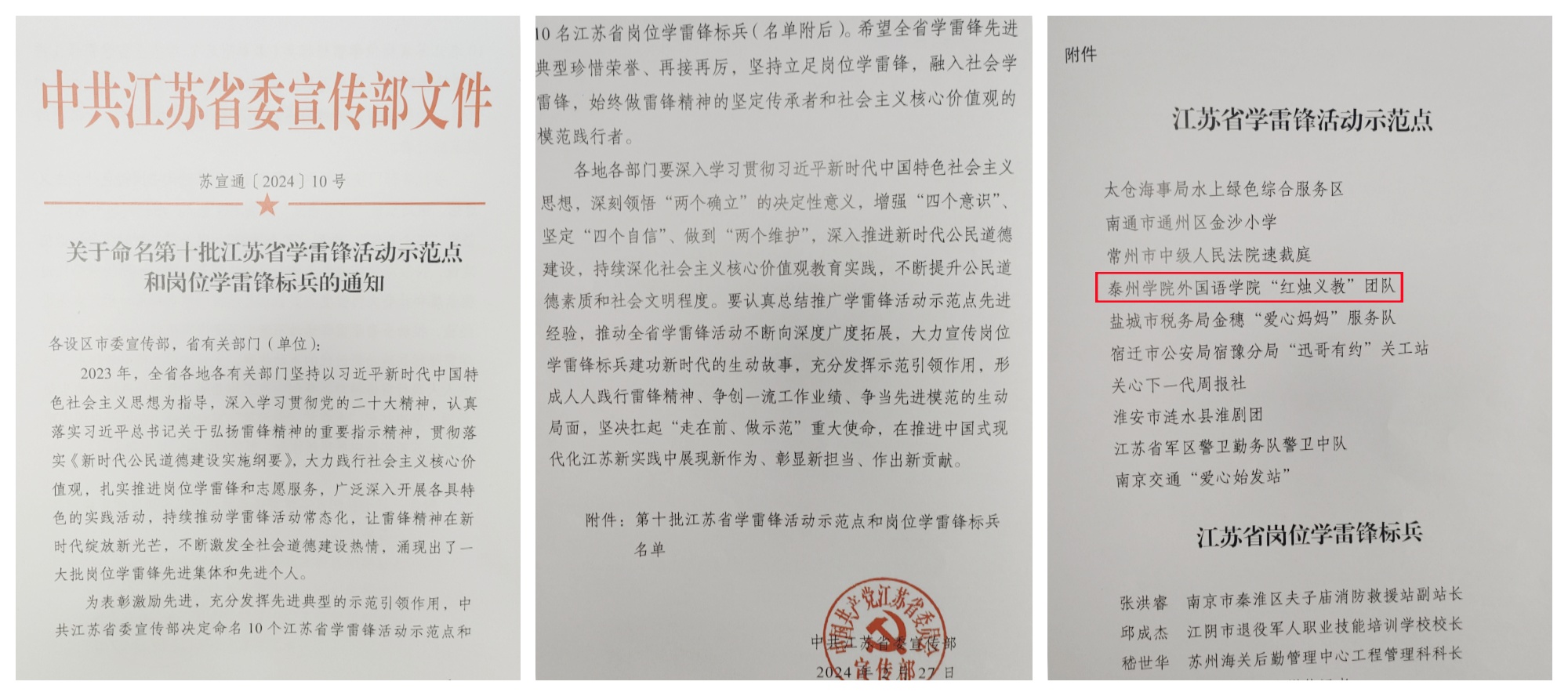在学雷锋纪念日到来之际,江苏省委宣传部发布并表彰第十批江苏省学雷锋活动示范点(10个)和岗位学雷锋标兵,Ky开元外国语学院“红烛义教”团队作为唯一高校志愿服务团队入选。项目负责人马永明接受江苏卫视采访,荔枝新闻全程直播《雷锋,是我们共同的名字》,新华日报专栏介绍,《交汇点新闻》《中国江苏网》等给予报道。