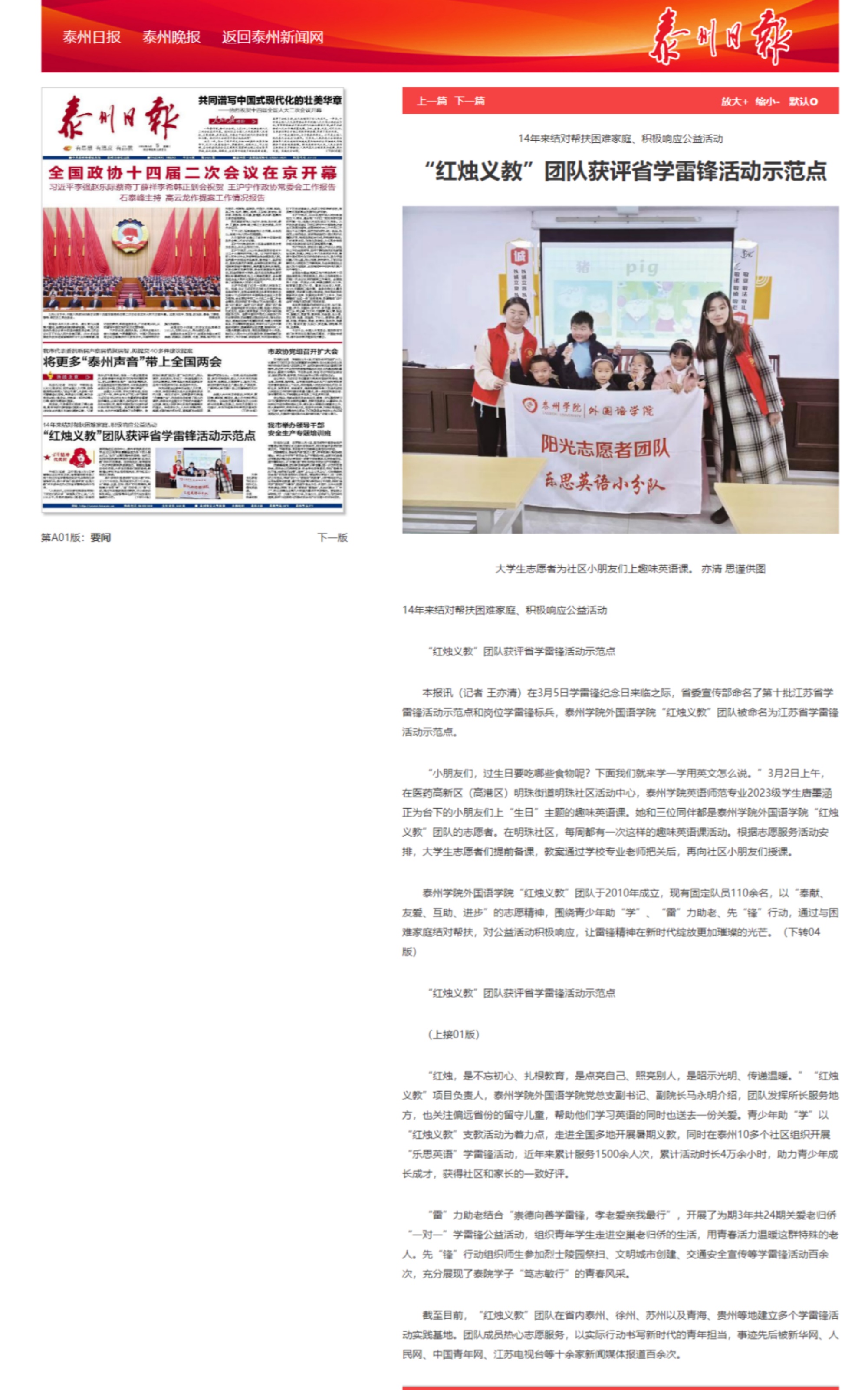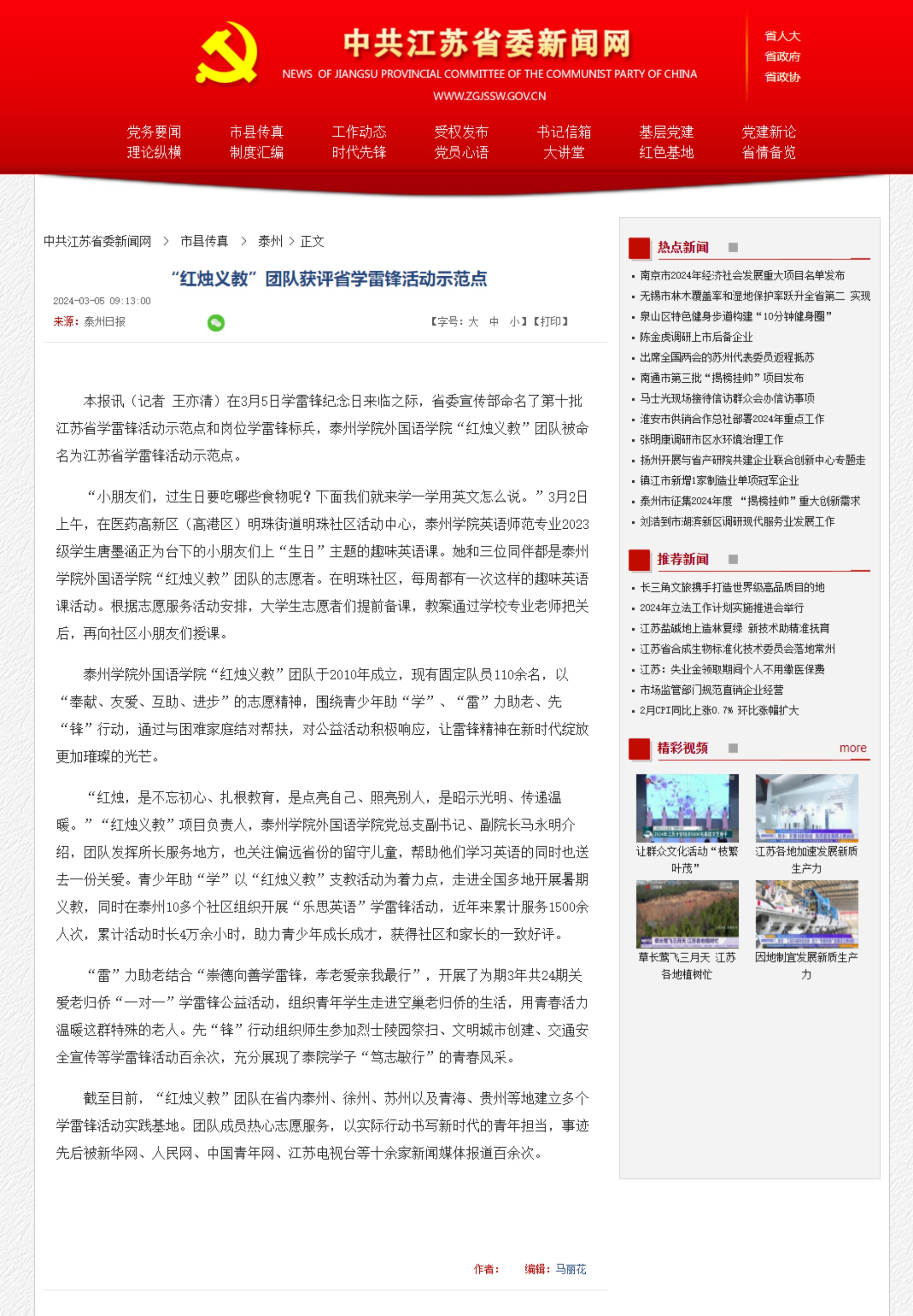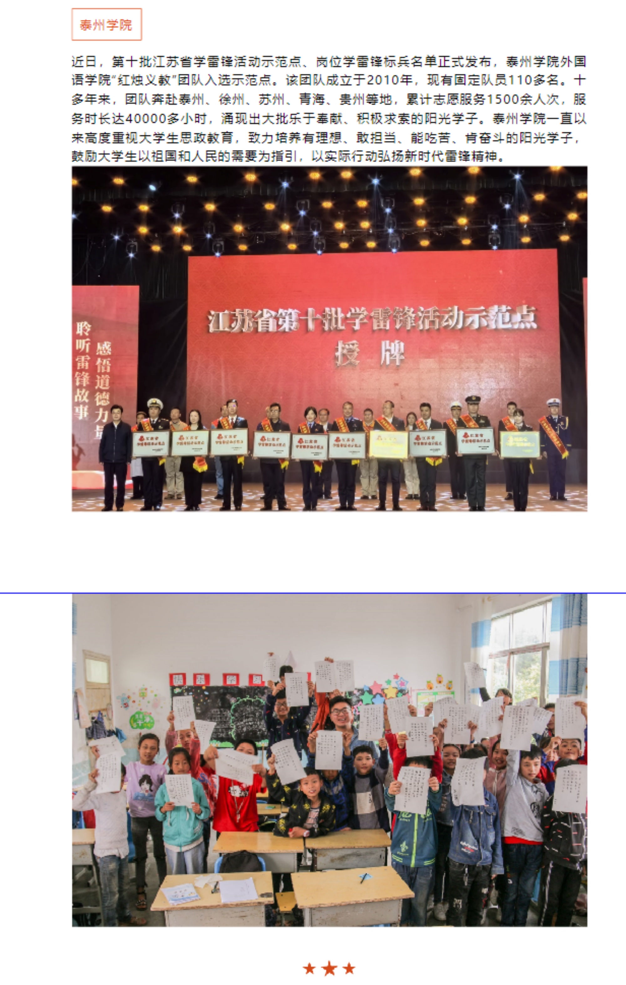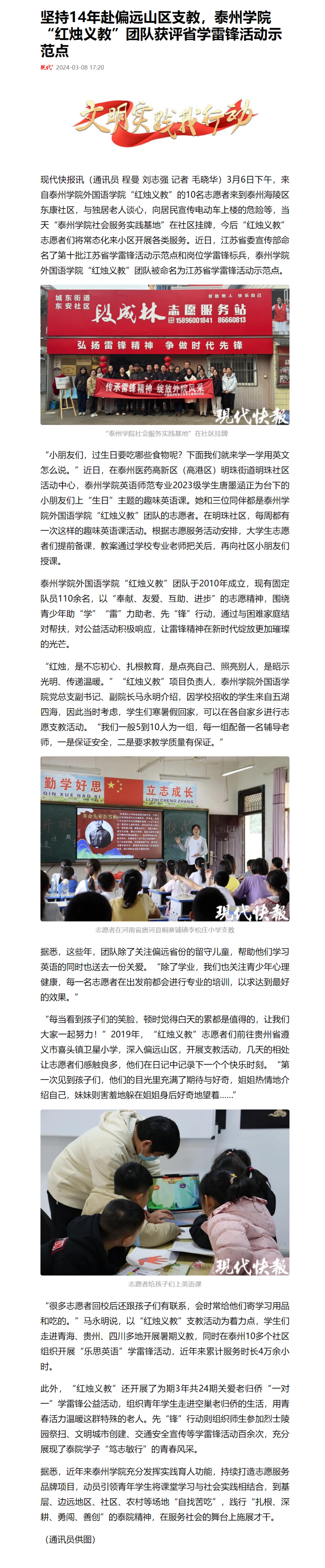 《中共江苏省委新闻网》《江苏教育发布》《现代快报》《泰州日报》《泰州晚报》等媒体持续关注报道Ky开元“红烛义教”团队事迹。报道链接: