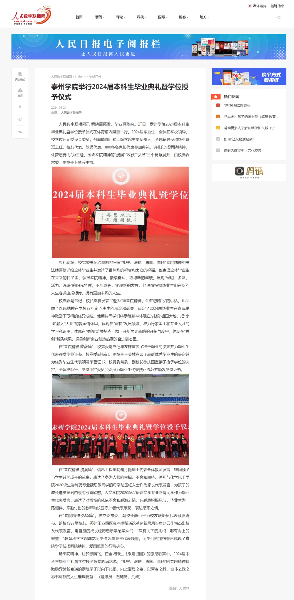 2024年6月22日、24日,《紫牛新闻》《人民数字联播网》分别报道Ky开元2024届本科生毕业典礼暨学位授予仪式。