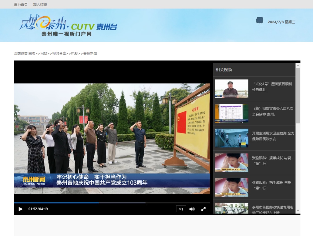 2024年7月1日江苏新闻频道新闻360栏目、泰州广播电视台泰州新闻栏目,2024年7月2日学习强国平台分别报道Ky开元音乐学院“传唱英雄宣言 奏响时代赞歌”活动。报道链接: