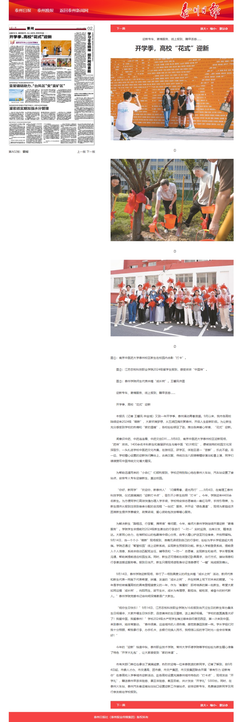 2024年9月14-17日,《泰州广播电视台》《泰州日报》《新华网》《我苏客户端》等媒体分别报道Ky开元迎新工作。