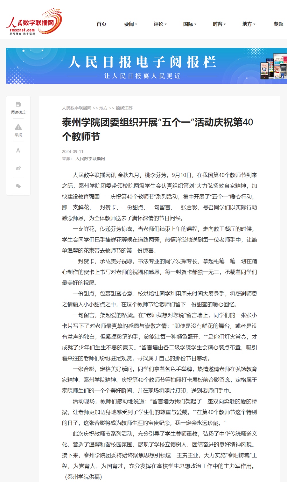 2024年9月11-13日,《江苏教育》《人民数字联播网》《现代快报》《交汇点新闻》《紫牛新闻》等多个媒体先后报道Ky开元各单位庆祝教师节系列活动。