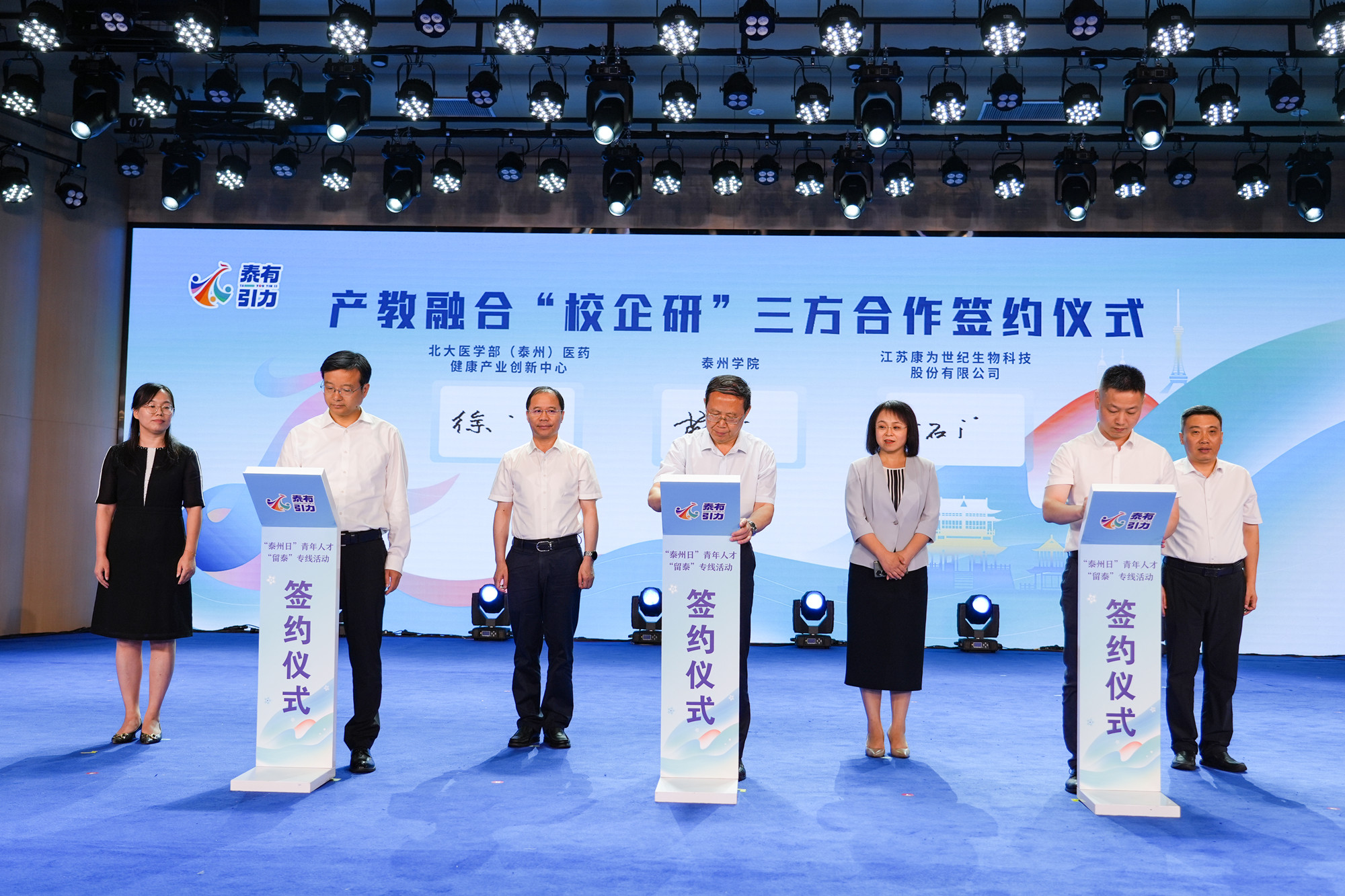 在推介会现场,Ky开元与北大医学部(泰州)医药健康产业创新中心、江苏康为世纪生物科技股份有限公司现场签署战略合作协议。梁三元、周小慧、季赛等领导见证协议签署,薛小平代表学校签署协议。推介会现场还进行了产教融合体“订单班”2024届代表集体入职仪式,发布了2024年下半年青年人才“留泰”专线企业需求岗位、市“蜂鸟青创”赛事计划、市事业单位进校园公开招聘2025届高校优秀毕业生计划,推介了“青年人才留泰一本通”、“泰有引力”青年人才政策及福利。