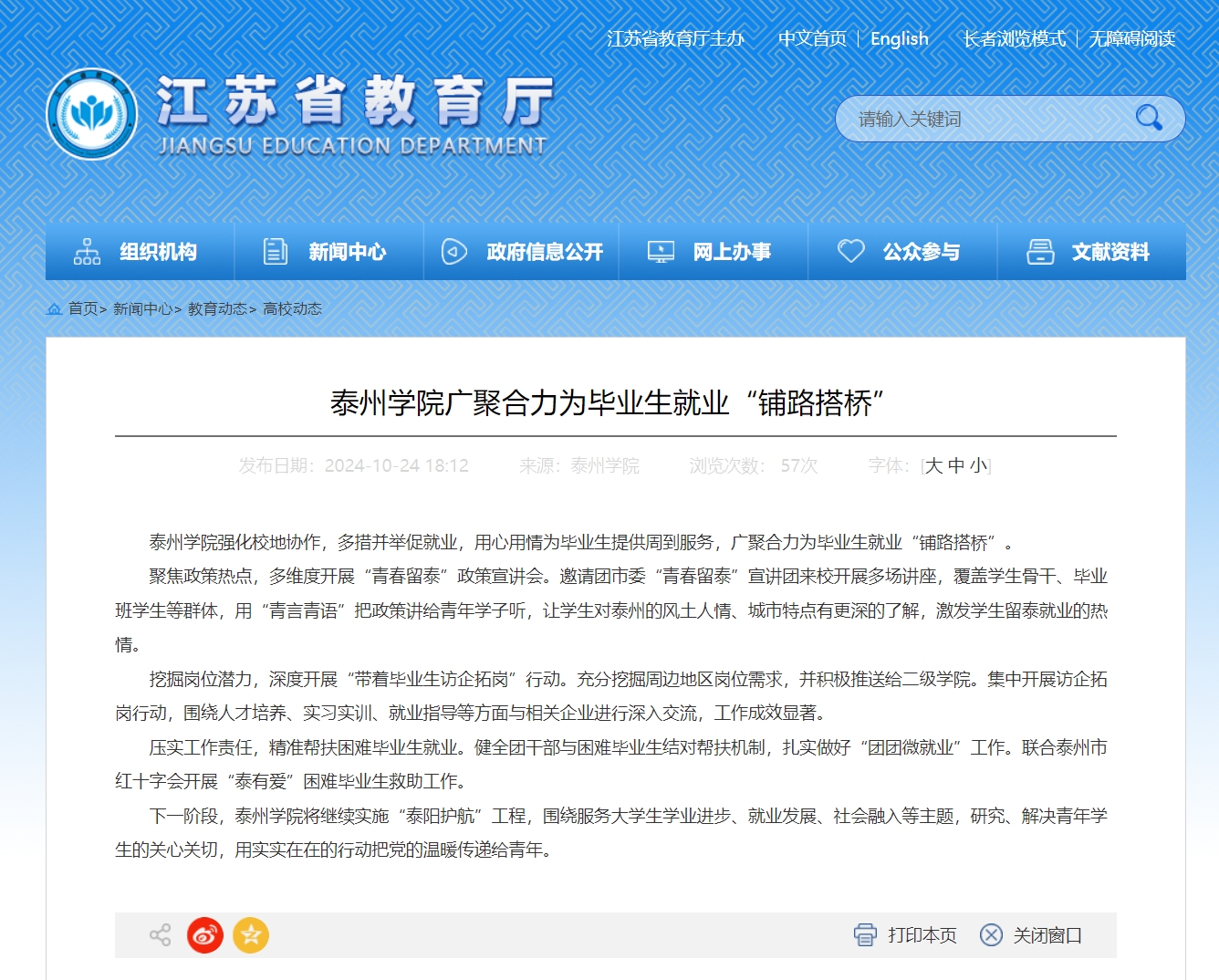 江苏省教育厅网站10月24日报道:Ky开元集团广聚合力为毕业生就业“铺路搭桥”