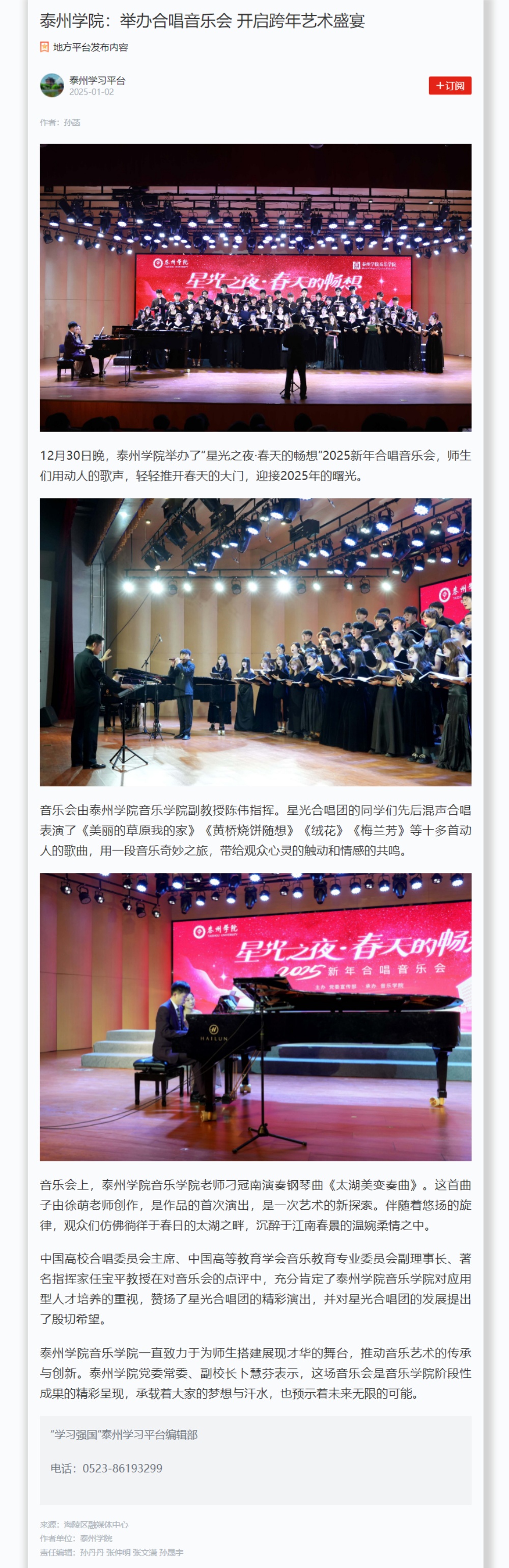 《学习强国》平台2025年1月2日报道《Ky开元集团:举办合唱音乐会 开启跨年艺术盛宴》