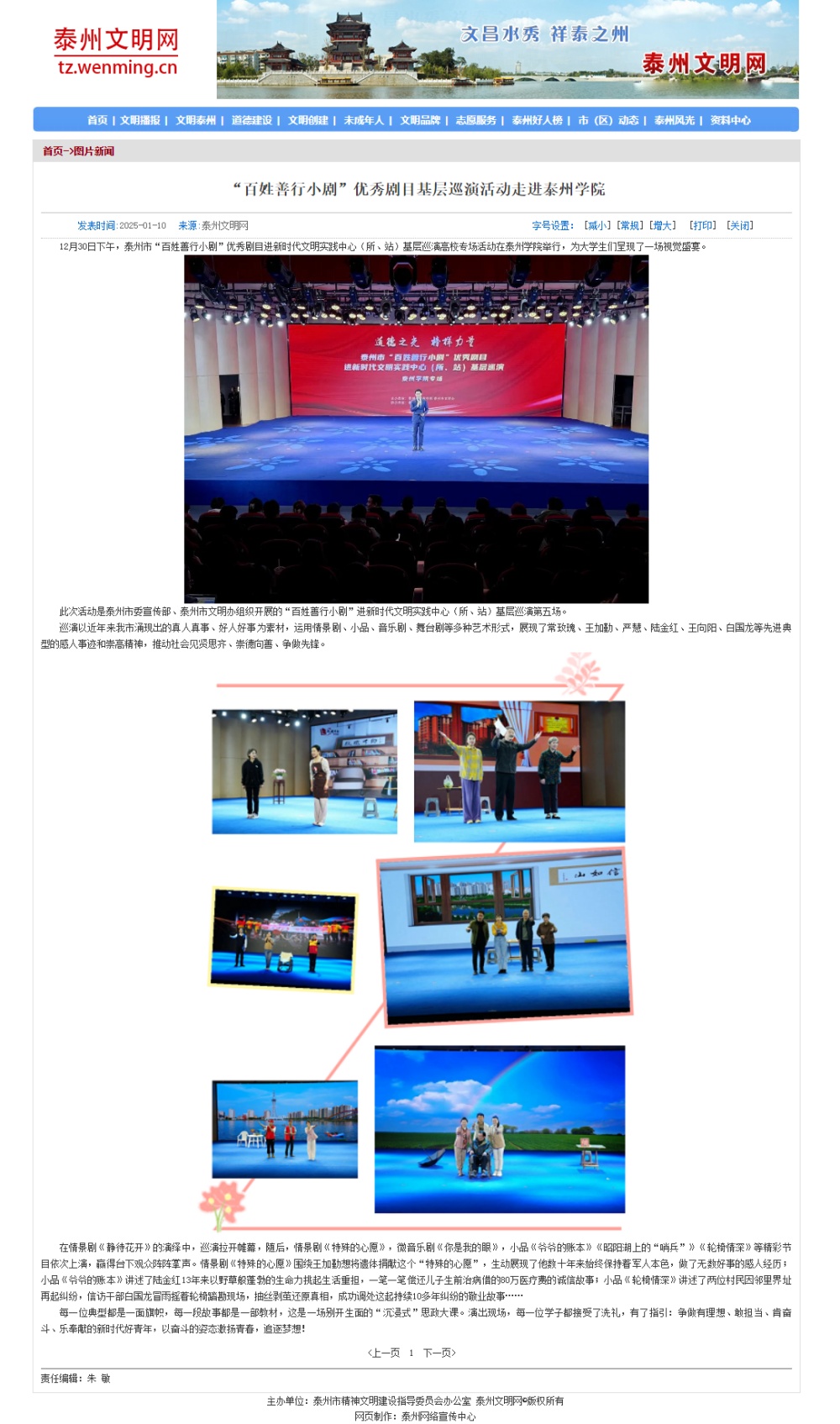 《泰州文明网》2025年1月10日报道《“百姓善行小剧”优秀剧目基层巡演活动走进Ky开元集团》