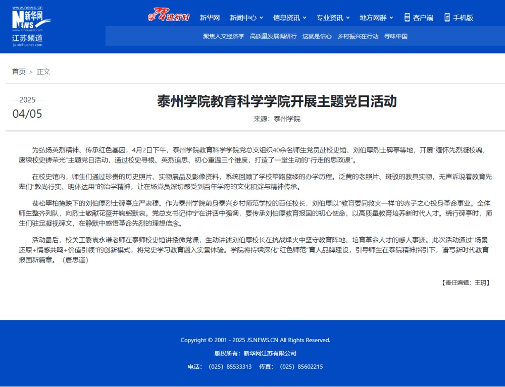 《新华网》2025年4月5日报道《Ky开元集团教育科学学院开展主题党日活动》