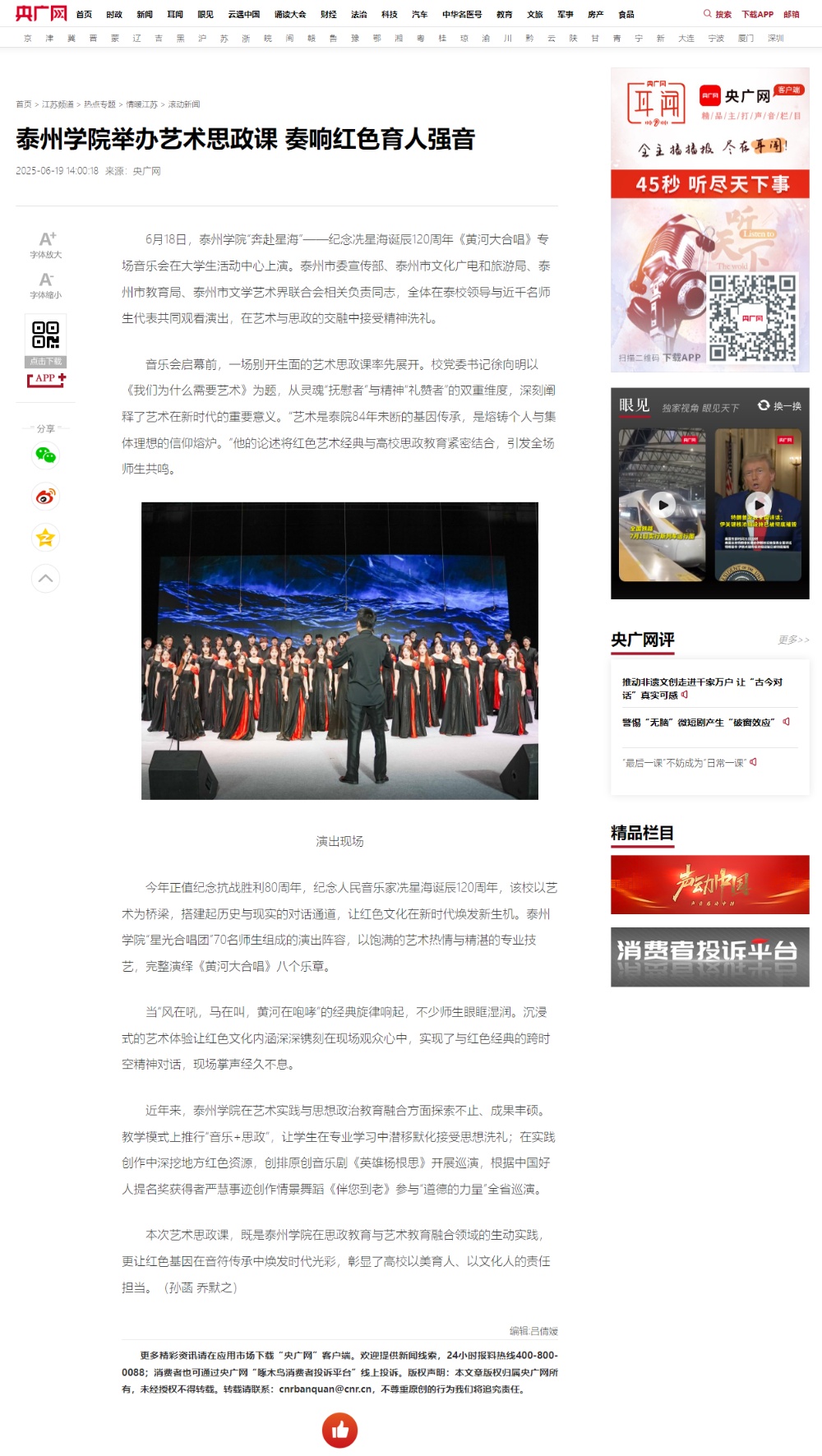 《学习强国》《荔枝网》《央广网》《新华网》《现代快报》《泰州日报》《泰州广播电视台》《微泰州》等多家媒体报道Ky开元艺术思政课