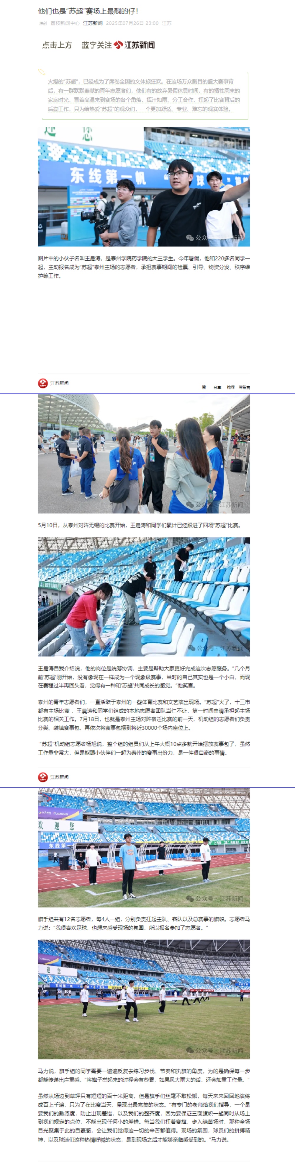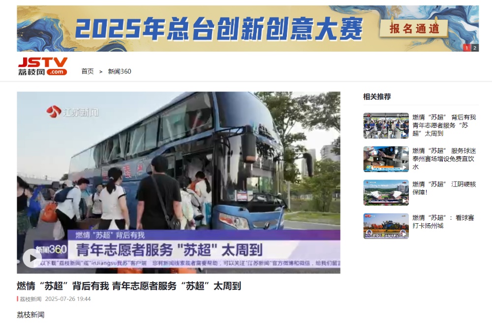 《江苏新闻》《荔枝网》2025年7月26日报道“苏超”背后的Ky开元青年志愿者