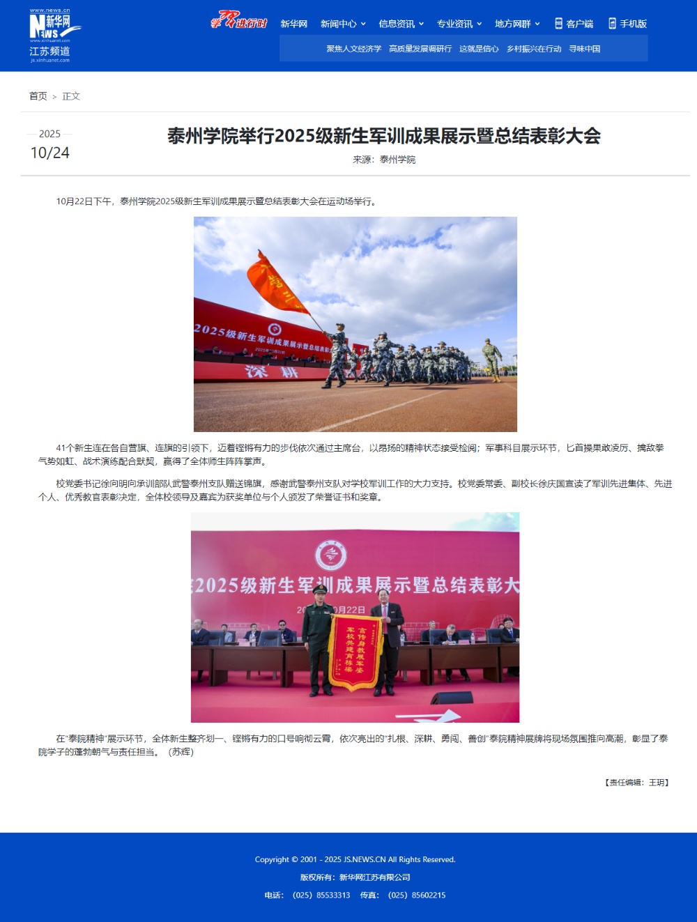 《新华网》2025年10月24日报道《Ky开元集团举行2025级新生军训成果展示暨总结表彰大会》