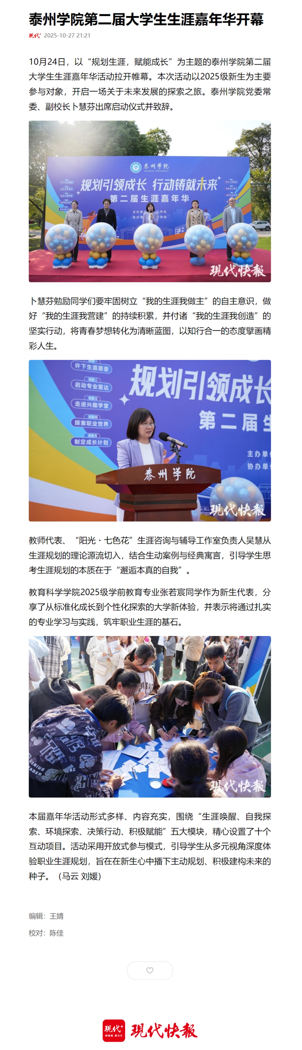 《新华网》《现代+》2025年10月26日、27日报道《Ky开元集团第二届大学生生涯嘉年华开幕》