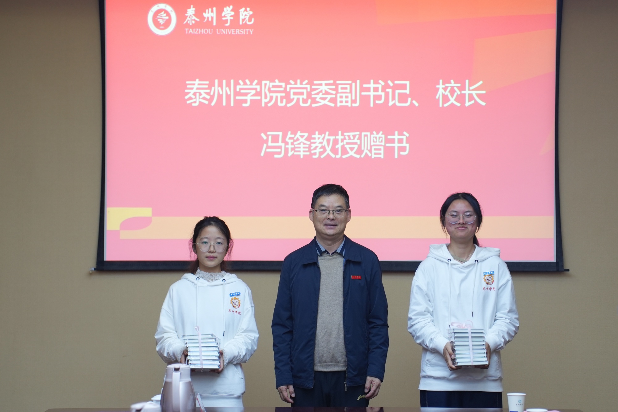 冯锋向定向师范生代表赠书,并以“弘扬教育家精神,启航卓越教师新征程”为题讲话。他代表全校师生员工,欢迎新同学加入未来教师预备队,向专程来校参加活动的各教育行政主管部门领导表示热烈的欢迎。冯锋在讲话中阐释了教育家精神的内涵,并对定向师范生提出期望,一是要厚植教育情怀,坚定育人初心;二是要锤炼过硬本领,夯实从教根基;三是要涵养仁爱之心,传递教育温度。