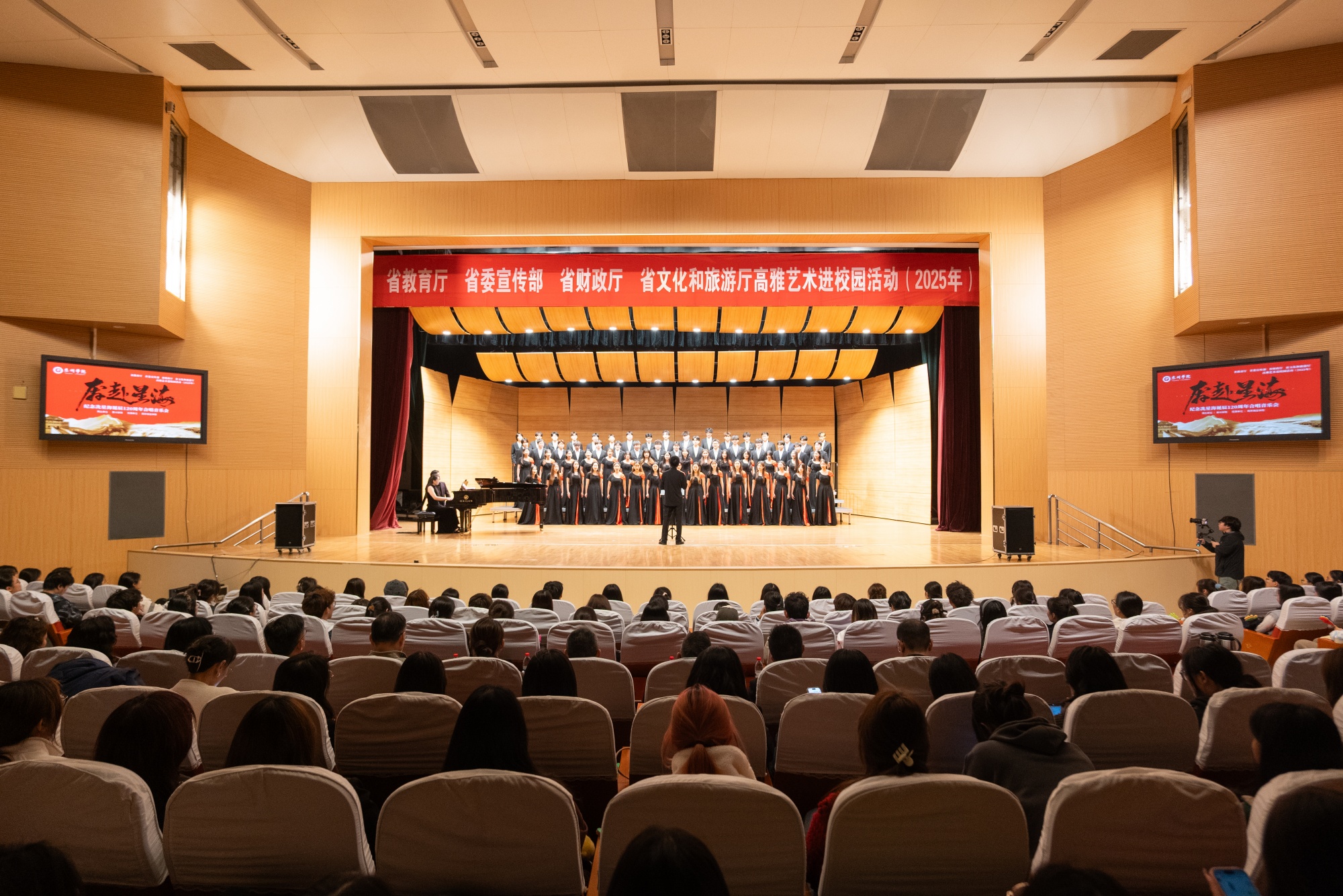 Ky开元《奔赴星海》——纪念冼星海诞辰120周年合唱音乐会,先后走进江苏农牧科技职业学院、南京师范大学Ky开元集团、南京晓庄学院、金陵科技学院、南京铁道职业技术学院五所高校,于11月12日圆满完成江苏省2025年高雅艺术进校园活动巡演计划。校党委常委、副校长魏小星出席音乐会。