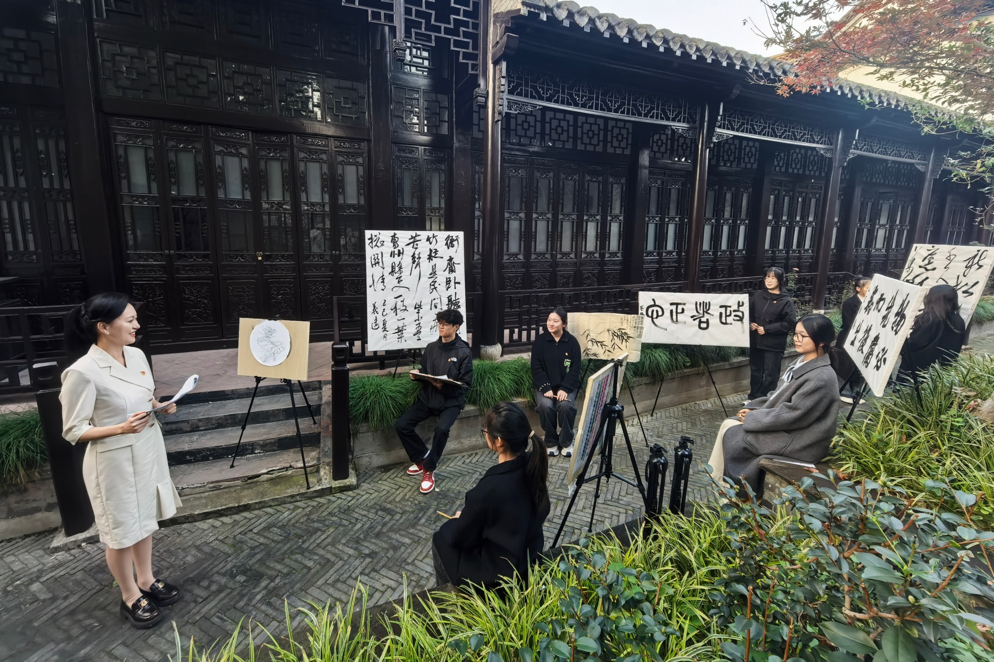 参观结束后,党支部在纪念馆研学空间同步开启艺术创作与微党课环节。学生党员们立足专业所长,将参观感悟融入笔墨丹青,现场创作廉政主题速写、水墨画等作品,以笔言志、以画传廉,在艺术实践中深化对清廉品质的理解与认同。创作期间,辅导员沈萍以《以廉润心,化选择为本能》为题讲授微党课,从郑板桥廉政典故切入,结合当代大学生成长实际,深刻阐释廉洁不仅是为官操守,更是青年党员在学习、生活与未来工作中必须恪守的行为准则。她鼓励大家将廉洁内化为心灵底色,在人生选择中坚守清廉本能,扣好人生每一粒扣子。