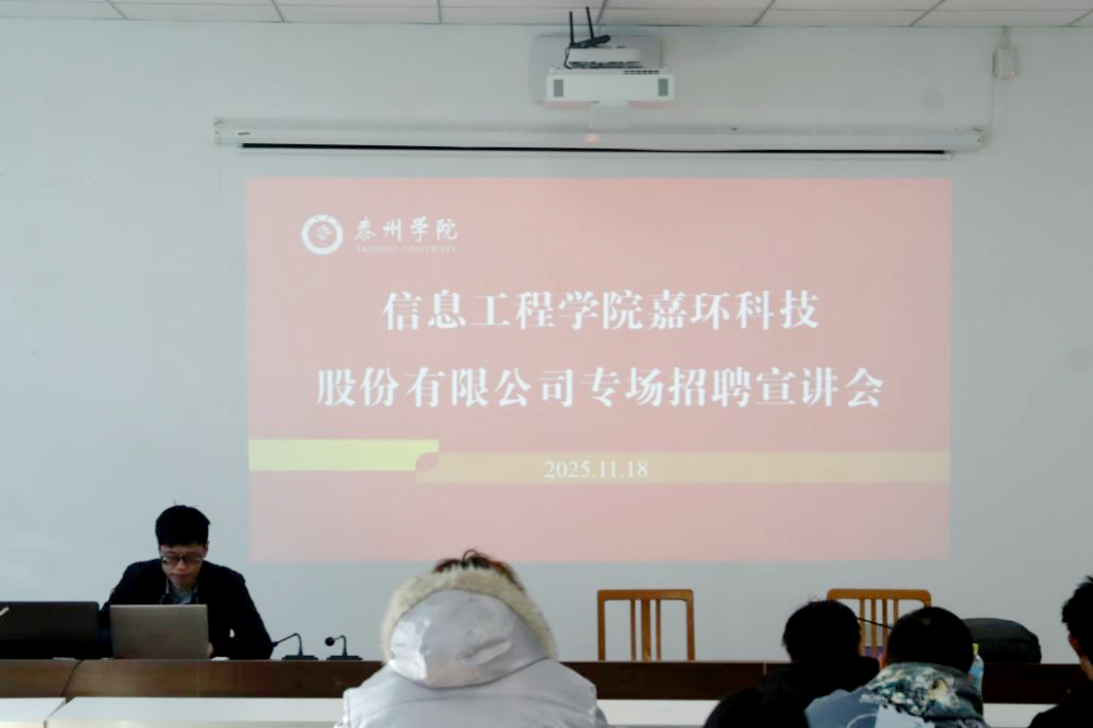 为扎实做好毕业生就业服务工作,帮助学生明晰职业方向、提升就业竞争力,11月18日,信息工程学院在博雅楼G2305会议室成功举办嘉环科技股份有限公司专场招聘宣讲会。本次宣讲会由企业经理马绍林主讲,学院2026届毕业生40余人参加。