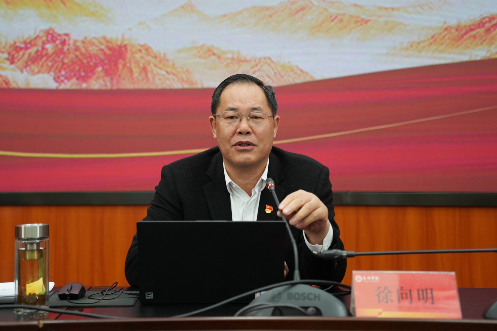 结合学校发展实际,徐向明回顾了近年来学校在应用型办学、学科建设、人才培养等方面的探索与进展,并对学校“十五五”时期贯彻落实全会精神的重点任务作出部署。他提出,要紧扣“建设一流应用型高校”总目标,以党建领航、学科攻坚、育人为本、师资强校、协同赋能、治理升级、文化铸魂等举措推动全会精神落地见效。