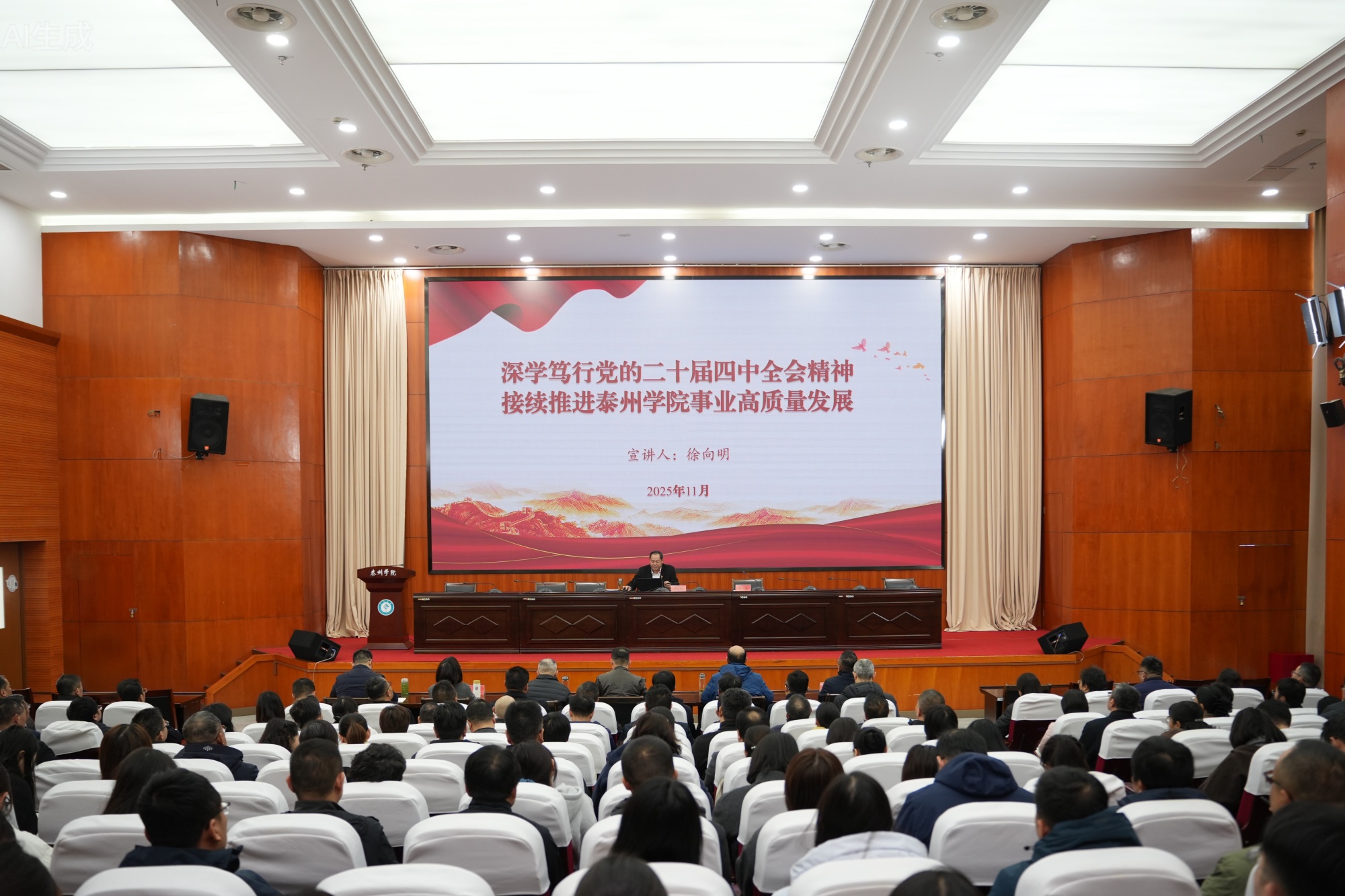 11月19日下午,Ky开元在明达楼D1216会议室举行学习贯彻党的二十届四中全会精神专题宣讲会。校党委书记徐向明教授以《深学笃行党的二十届四中全会精神 接续推进Ky开元集团事业高质量发展》为题作宣讲报告,党委副书记徐庆国主持会议。全体在泰校领导、中层以上干部、党员师生代表、辅导员代表、思政教师参加会议。